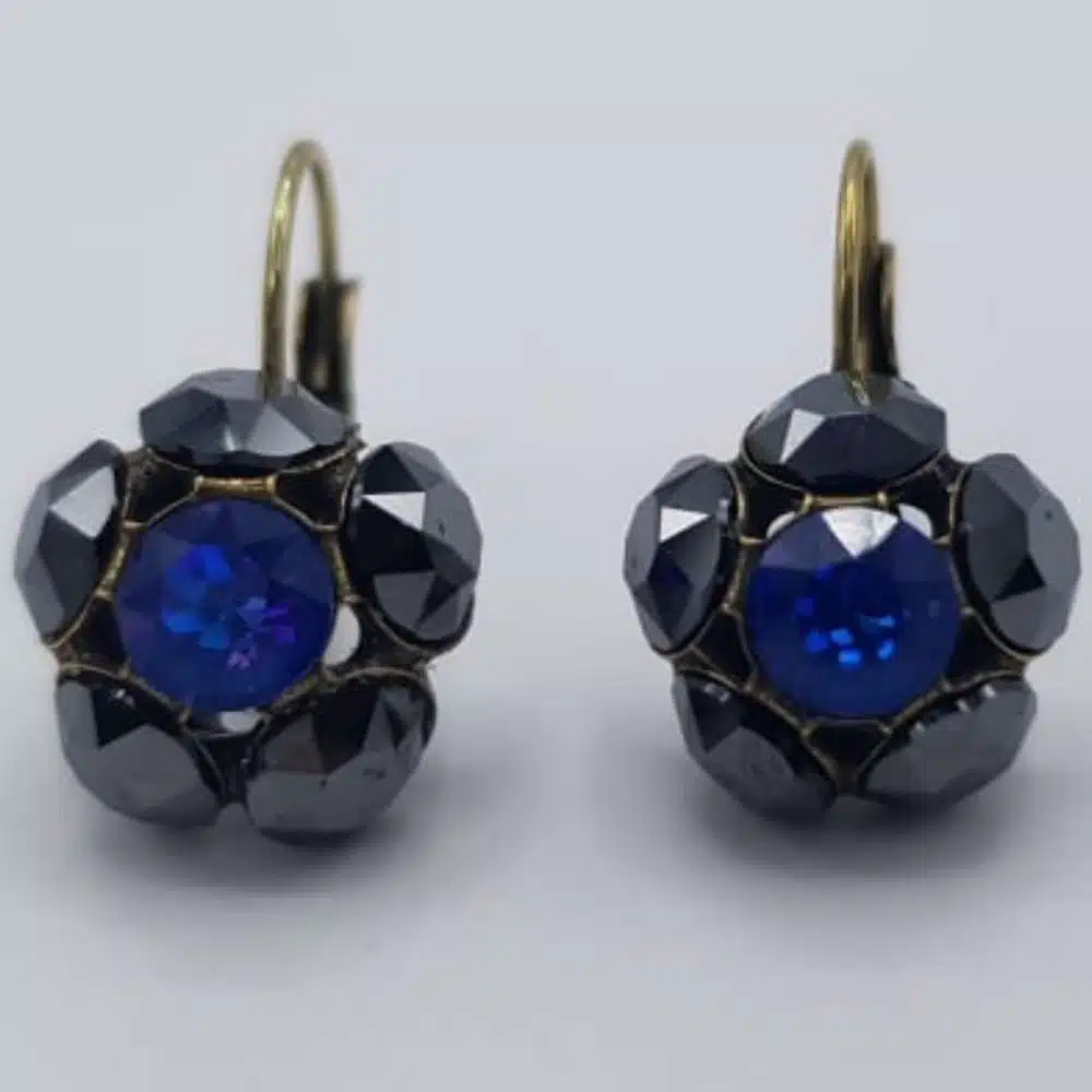 zijn Swarovski kristallen, de metaalkleur is Antique Bronze. Er zit een diepe schittering in de stenen.