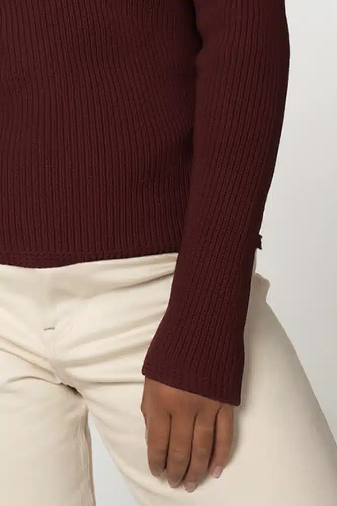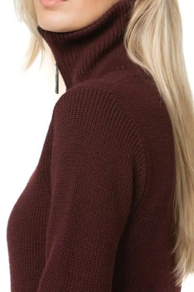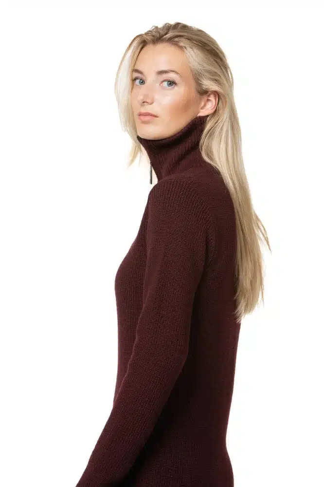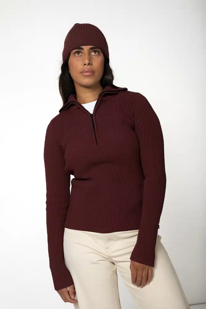 De Doutzen Schipperstrui Barolo van Roosenstein Wolke is dé damesvariant van de klassieke schipperstrui, speciaal ontworpen voor een vrouwelijke pasvorm zonder de stoere uitstraling te verliezen. Met zijn verfijnde parelvangsteek en subtiele heritage-details is dit een uniek stuk knitwear waarin traditie en modern design samenkomen. De trui heeft een half-zip rits aan de voorzijde, uitgevoerd in mat zwart met duurzame YKK-kwaliteit, en is afgewerkt met zwarte metalen accenten die direct refereren aan de iconische Rooscap-schipperspet.