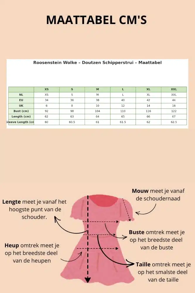 Roosenstein Wolke is een Fries familiebedrijf dat al sinds 1886 duurzame en hoogwaardige kleding maakt, geïnspireerd op het zeemansleven. Bekend om de authentieke Rooscap-schipperspet, verwerkt het merk tot op de dag van vandaag ambacht en erfgoed in zijn collecties. De Doutzen Schipperstrui is daar een voorbeeld van: stoer, stijlvol en met een verhaal.