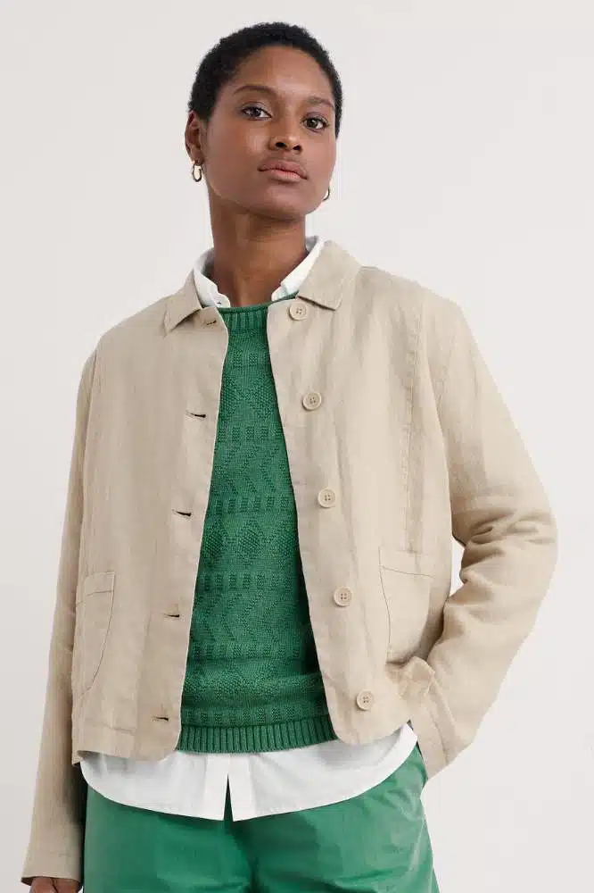 Of je nu een licht jasje zoekt voor frisse lentedagen of een veelzijdig laagje voor koelere zomeravonden, de Arame Jacket Whelk is een duurzame keuze die moeiteloos combineert met verschillende outfits.