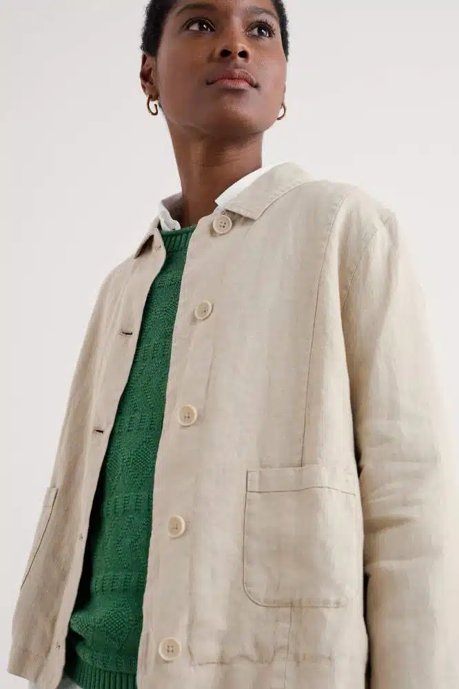De Arame Jacket Whelk van Seasalt Cornwall is een klassiek, garment-dyed linnen jack met een ontspannen, moeiteloze pasvorm. Geïnspireerd door traditionele Cornish workwear, combineert dit jasje functionaliteit met een tijdloze stijl. Het is perfect om nonchalant over een trui en jeans te dragen of losjes over een zwierige jurk voor een casual, verfijnde look.