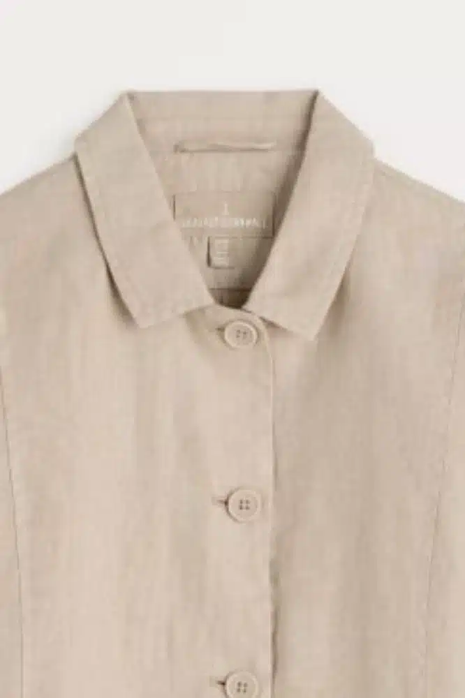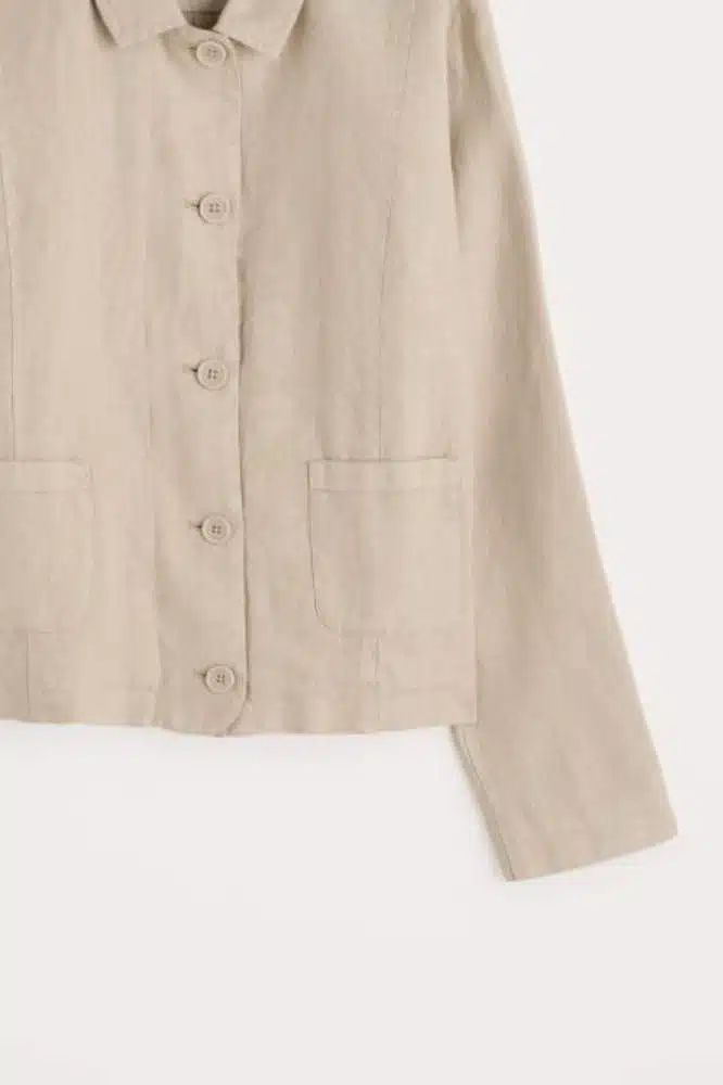 De Arame Jacket Whelk is gemaakt van 100% linnen, een duurzaam en ademend materiaal dat ideaal is voor warmere dagen. Linnen is van nature sterk en wordt met de tijd alleen maar zachter, waardoor het een uitstekende keuze is voor een bewuste garderobe.
