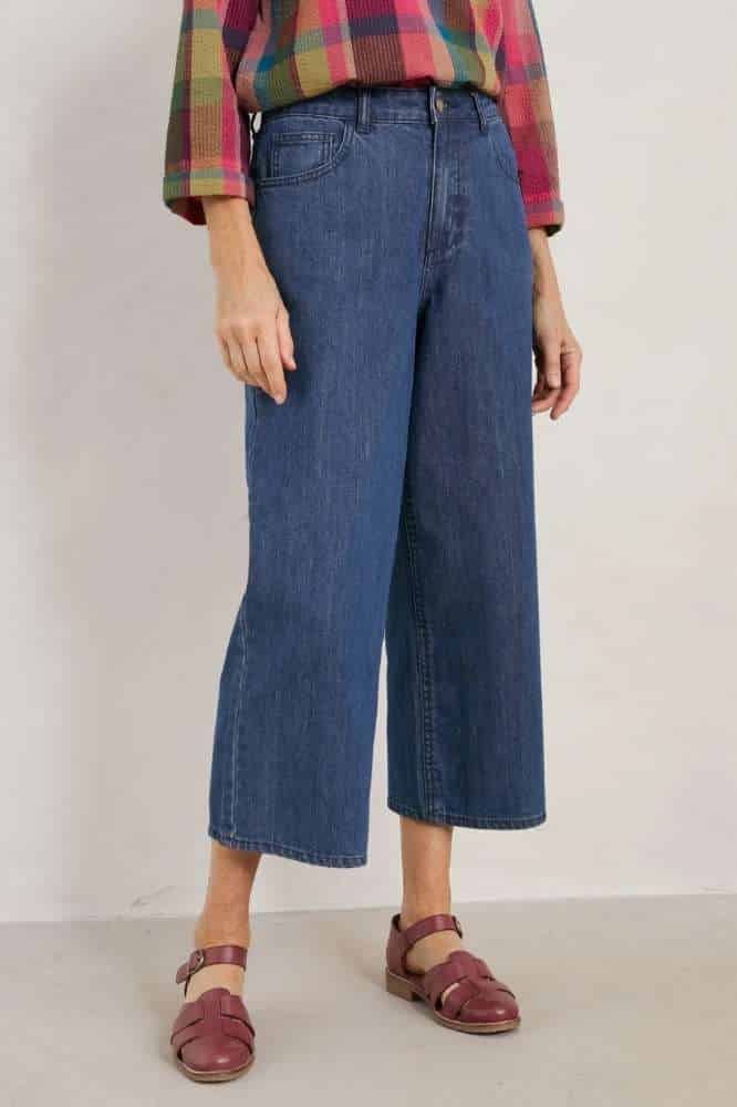 De Seasalt Cornwall Barnes Crops Mid Wash Indigo is een jeans in culotte stijl die in de natuurlijke taille valt. De broek heeft een wijde pijp en een moderne look. Gemaakt van een zachte en biologische katoen, heeft deze jeans met wijde pijpen dubbele stiksels, steekzakken op voor- en achterkant en sluit hij met een knoop- en ritssluiting.