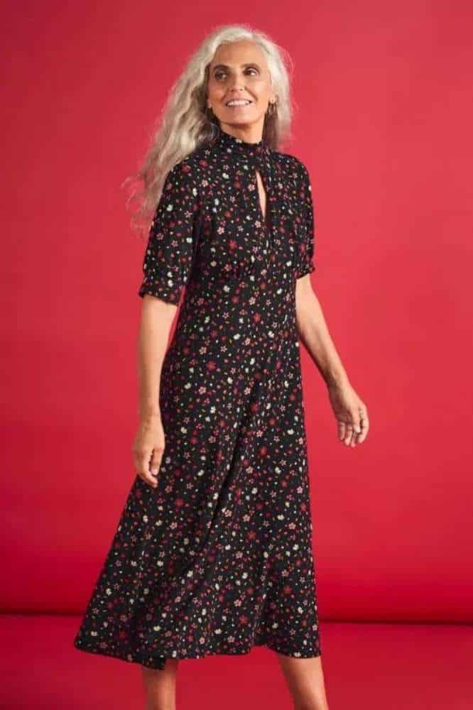 De Calendula Dress Petal Press Onyx van Seasalt Cornwall: Tijdloze Elegantie met een Vintage Touch