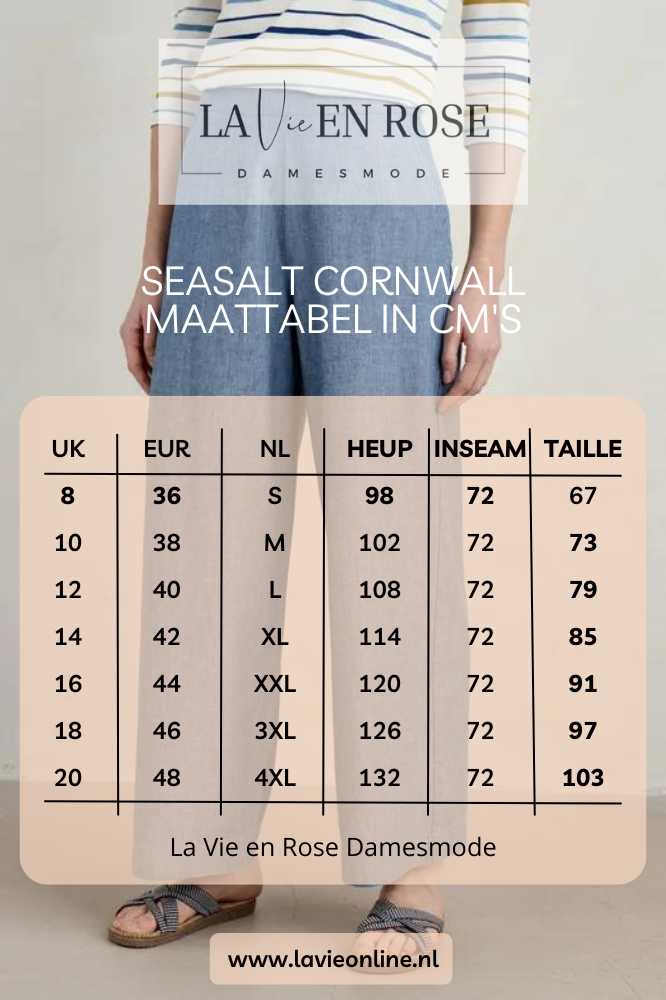 Ontdek jouw perfecte pasvorm met onze handige maattabel en voeg een vleugje tijdloze elegantie toe aan je zomergarderobe met de Calluna Trousers Mid Wash Cross Hatch van Seasalt Cornwall.