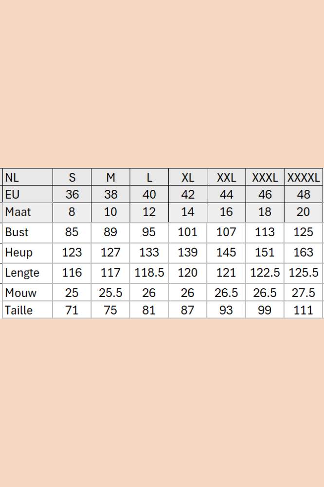 Modelmaat: Het model is 178 cm en draagt maat UK 8
