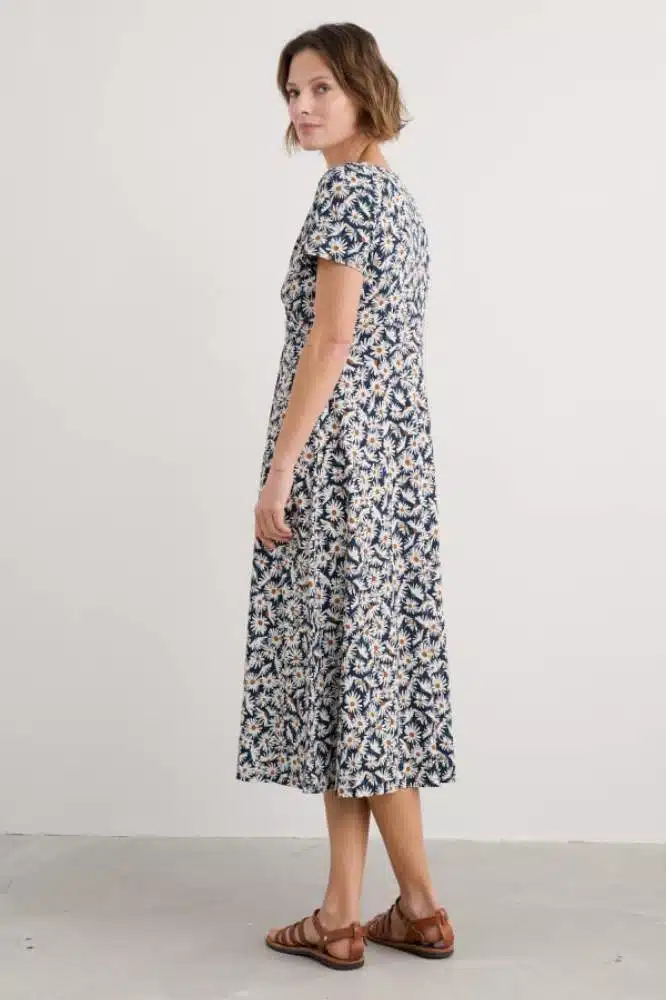 Het dessin Scatter Daisy Maritime is een unieke Seasalt-print, geïnspireerd door de natuur en het maritieme erfgoed van Cornwall. Dankzij de comfortabele jerseystof beweegt de jurk moeiteloos met je mee, waardoor je er stijlvol uitziet zonder in te leveren op draagcomfort. Of je hem nu draagt met sandalen op een zonnige dag of met een vest en laarzen tijdens de koelere maanden, deze jurk is een veelzijdige toevoeging aan elke garderobe.