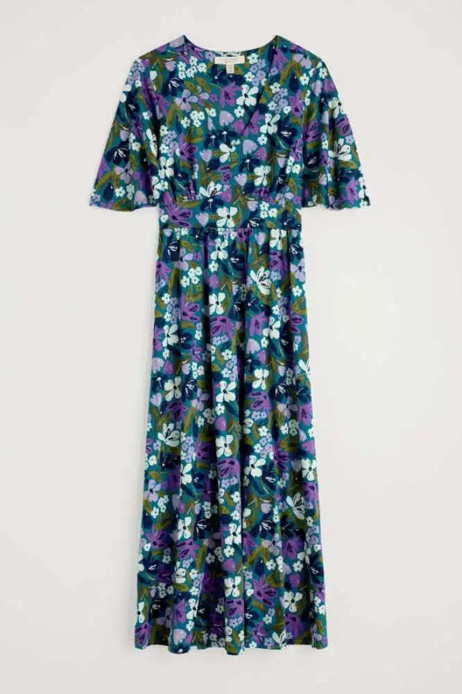 Het zachte biologische katoen voelt prettig aan op de huid en valt soepel om het lichaam. Het bloemendessin in diepe, warme tinten voegt een verfijnde touch toe zonder overheersend te zijn. Dankzij de aandacht voor pasvorm en materiaalkeuze is deze jurk geschikt voor vele gelegenheden: van een zonnige wandeling tot een diner op het terras of zelfs een informele bruiloft. Combineer met sandalen, een espadrille of een kort vestje en je hebt telkens een andere look.