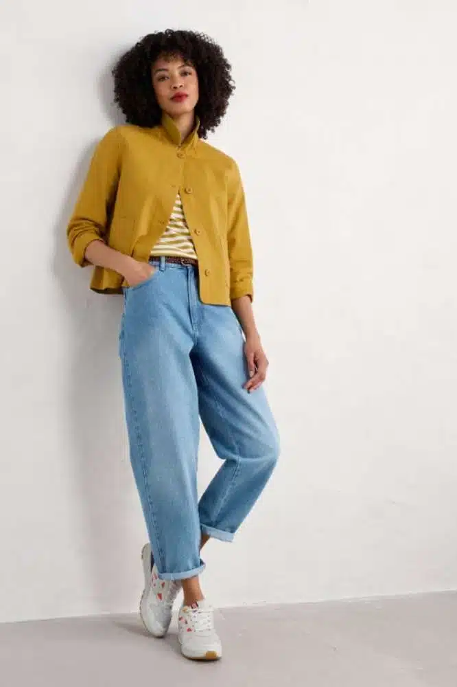 De Coombe Lane Jacket in Chamomile is een tijdloze en veelzijdige jas, perfect voor de overgang tussen de seizoenen. Gemaakt van een ademende mix van katoen en linnen, biedt deze jas een natuurlijke en comfortabele pasvorm. Het ontwerp is geïnspireerd op klassieke workwear, met een relaxte pasvorm, een opstaande kraag, en functionele zakken die zowel praktisch als stijlvol zijn.