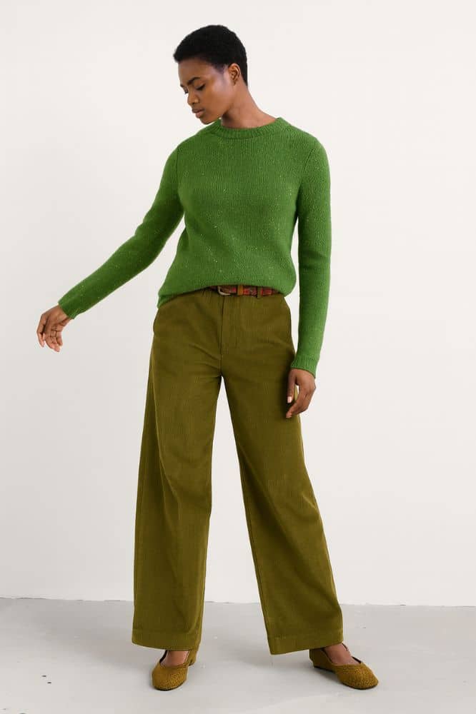 De hoge taille geeft een mooie, vrouwelijke lijn en zorgt ervoor dat de broek perfect zit zonder te knellen. De wijde pijp is elegant, luchtig en geeft die heerlijke retro-inspiratie die helemaal past bij de Britse stijl waar Seasalt zo goed in is. De diepe zoom maakt ‘m net even bijzonderder dan de gemiddelde corduroy trouser — subtiel, maar precies genoeg om klasse uit te stralen.