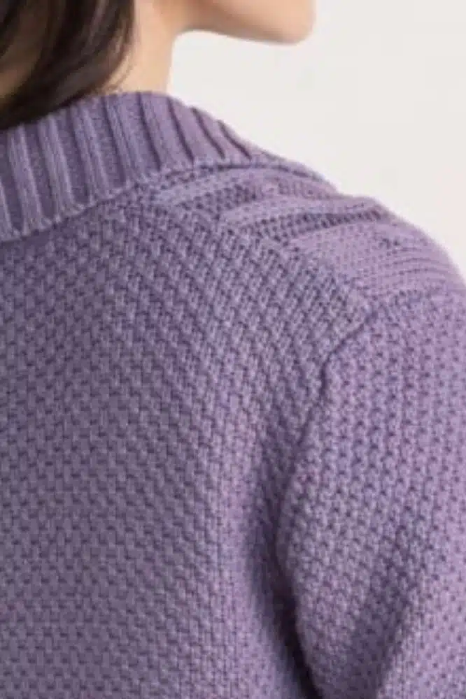 Met zijn rijke textuur en verfijnde afwerking is deze cardigan een veelzijdige toevoeging aan je garderobe. Het is niet alleen stijlvol, maar ook een bewuste keuze dankzij het gebruik van duurzame materialen.