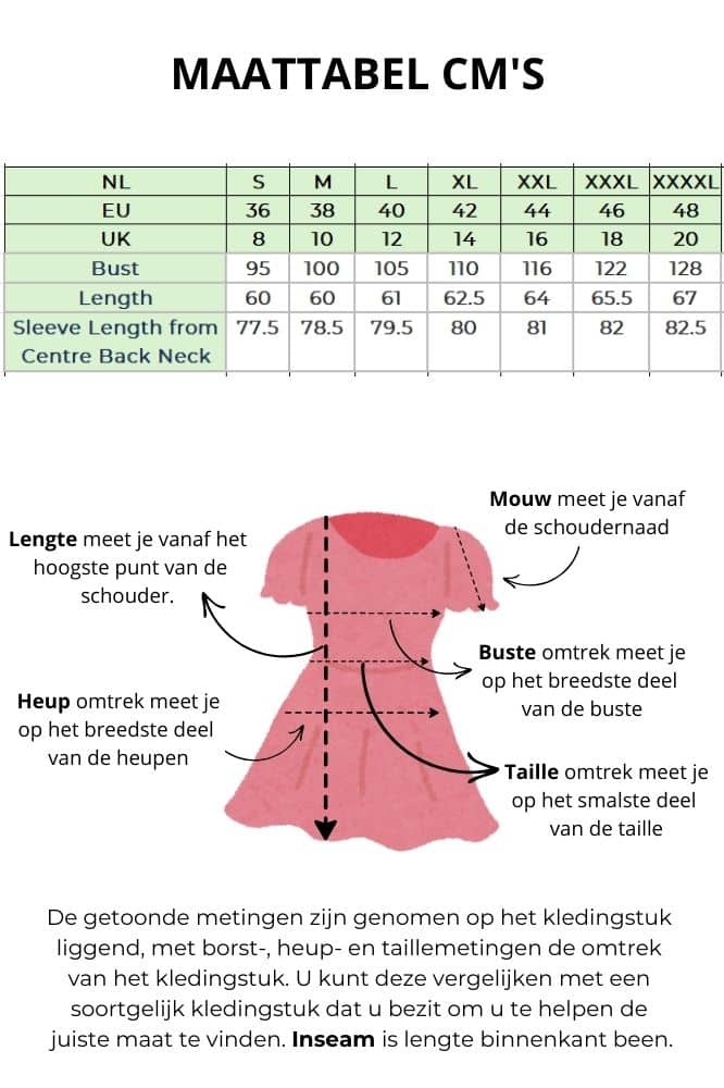 | Maat | S, M, L, XL, XXL |