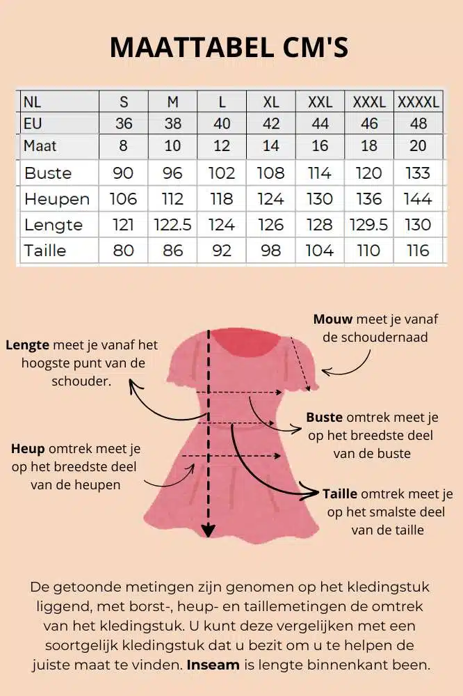 Pasvorm: Slank, met empire-lijn en subtiel zwierige rok