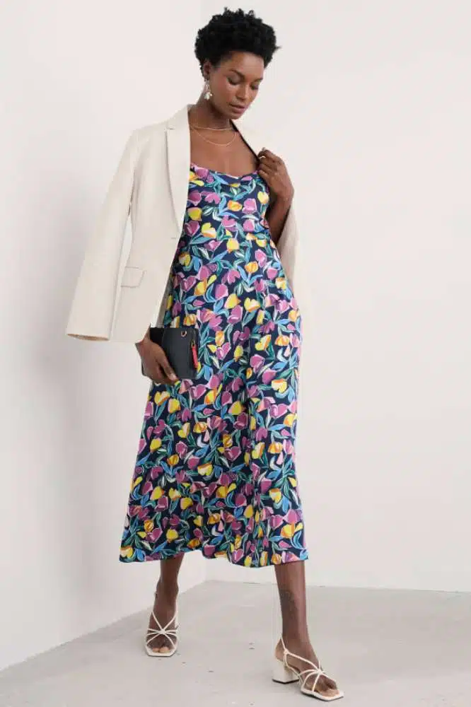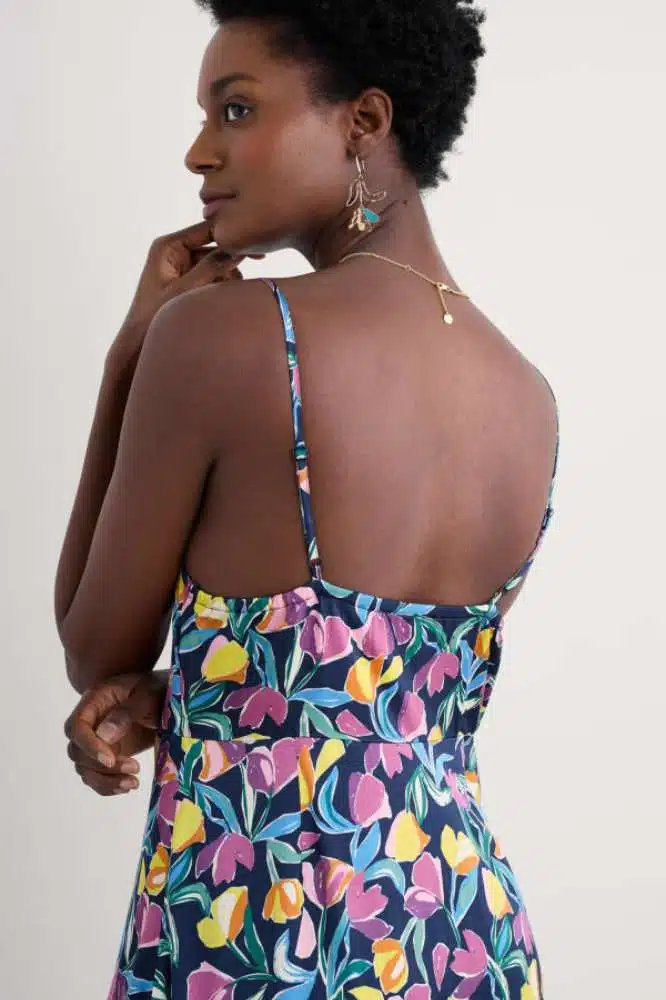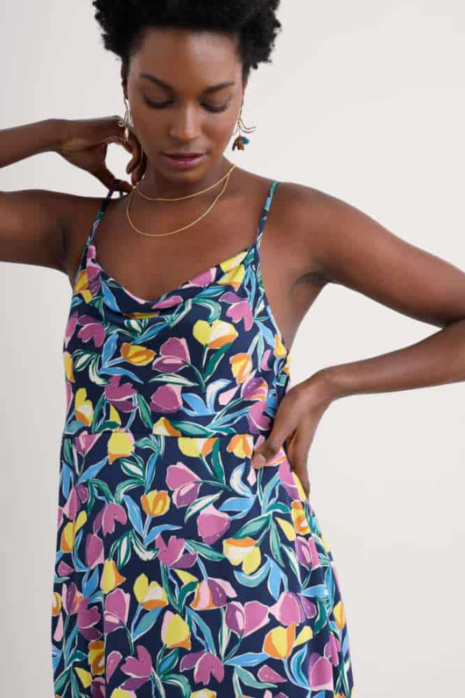 Maat model: 175 cm en draagt maat UK8 – Seasalt Cornwall Housel Bay Dress Collaged Tulips Maritime – La Vie en Rose Damesmode
