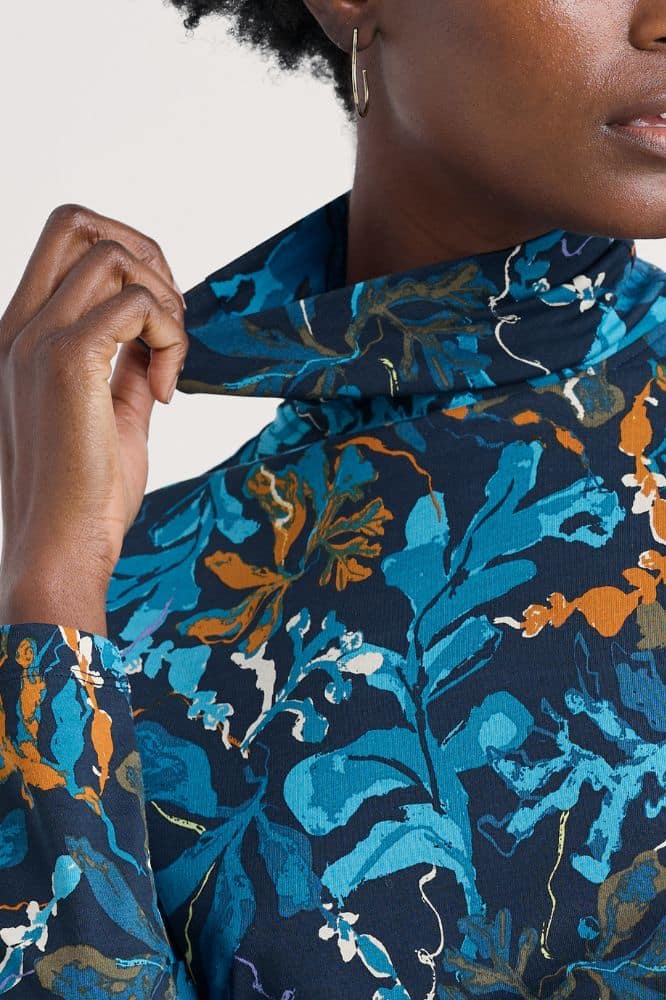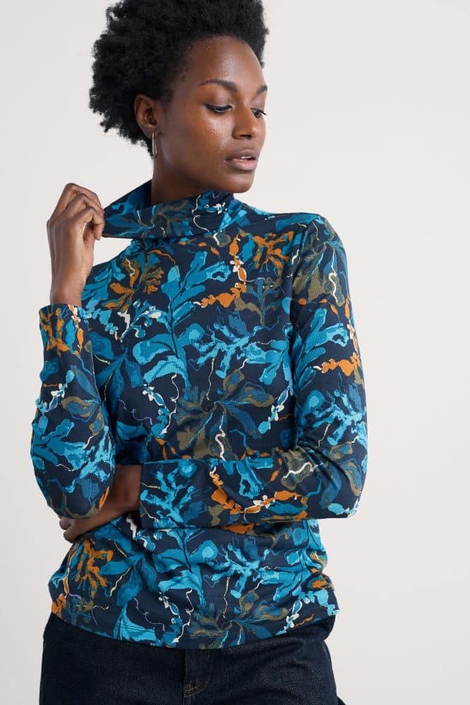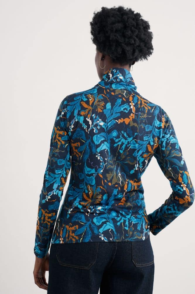 De Landing Top Floating Fronds Maritime van Seasalt Cornwall is een semi-getailleerde longsleeve met een ontspannen uitstraling en zachte draagkwaliteit. Het ontwerp combineert eenvoud en verfijning: een comfortabele rolkraag, lange mouwen en een subtiel aansluitende pasvorm die moeiteloos flatterend werkt. Uitgevoerd in de kleur Landing Top Floating Fronds Maritime, een diep en veelzijdig blauw, is dit een veelzijdige basic die zich laat stylen in talloze combinaties.