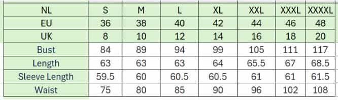 • Model draagt: maat 10, lengte ca. 1,75 m