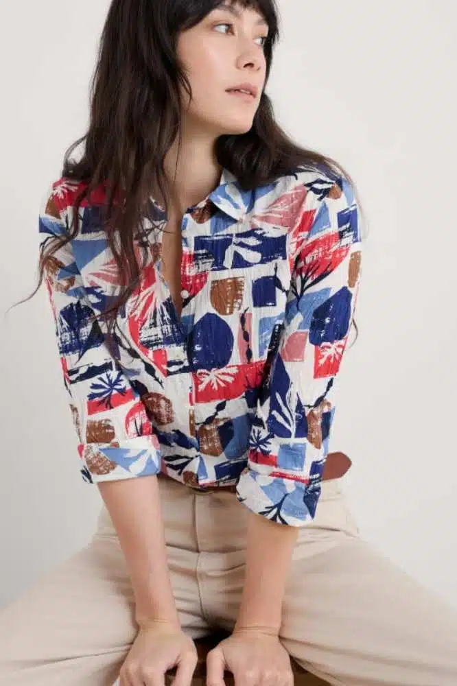 Elk seizoen introduceert Seasalt Cornwall nieuwe prints die exclusief worden ontworpen door hun getalenteerde textielontwerpers. Dit maakt de Larissa Shirt niet alleen stijlvol, maar ook uniek. Bovendien wordt het shirt op een speciale manier verpakt – in een kunstige twist – zodat de kenmerkende kreukeltextuur direct zichtbaar is.