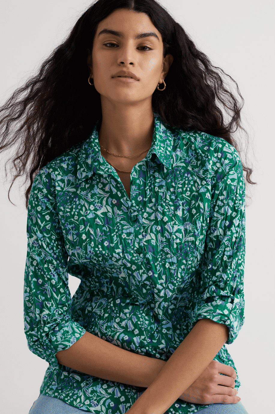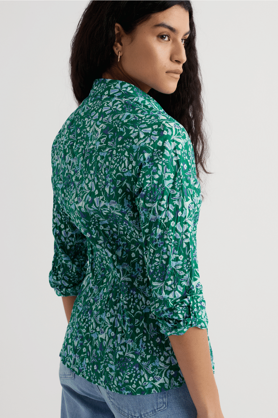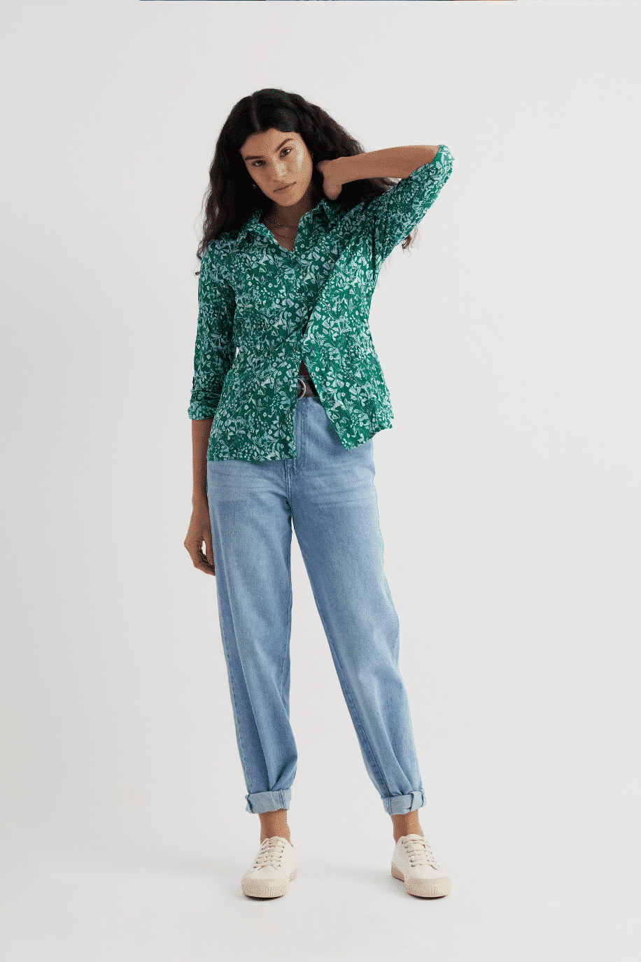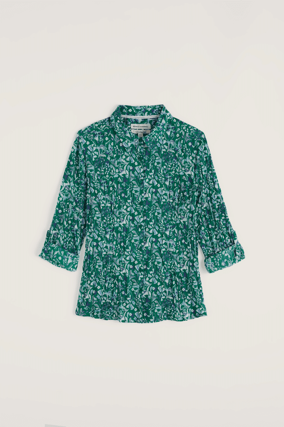 De semi-fitted pasvorm zorgt voor een vrouwelijke lijn zonder strak te zitten. De blouse heeft een klassieke kraag, lange mouwen en slimme button loops zodat je de manchetten eenvoudig kunt oprollen. Praktisch én stijlvol. De Woodland Floral Dark Stem print geeft deze uitvoering een frisse, verfijnde uitstraling die makkelijk combineert met denim, linnen of een nette broek.