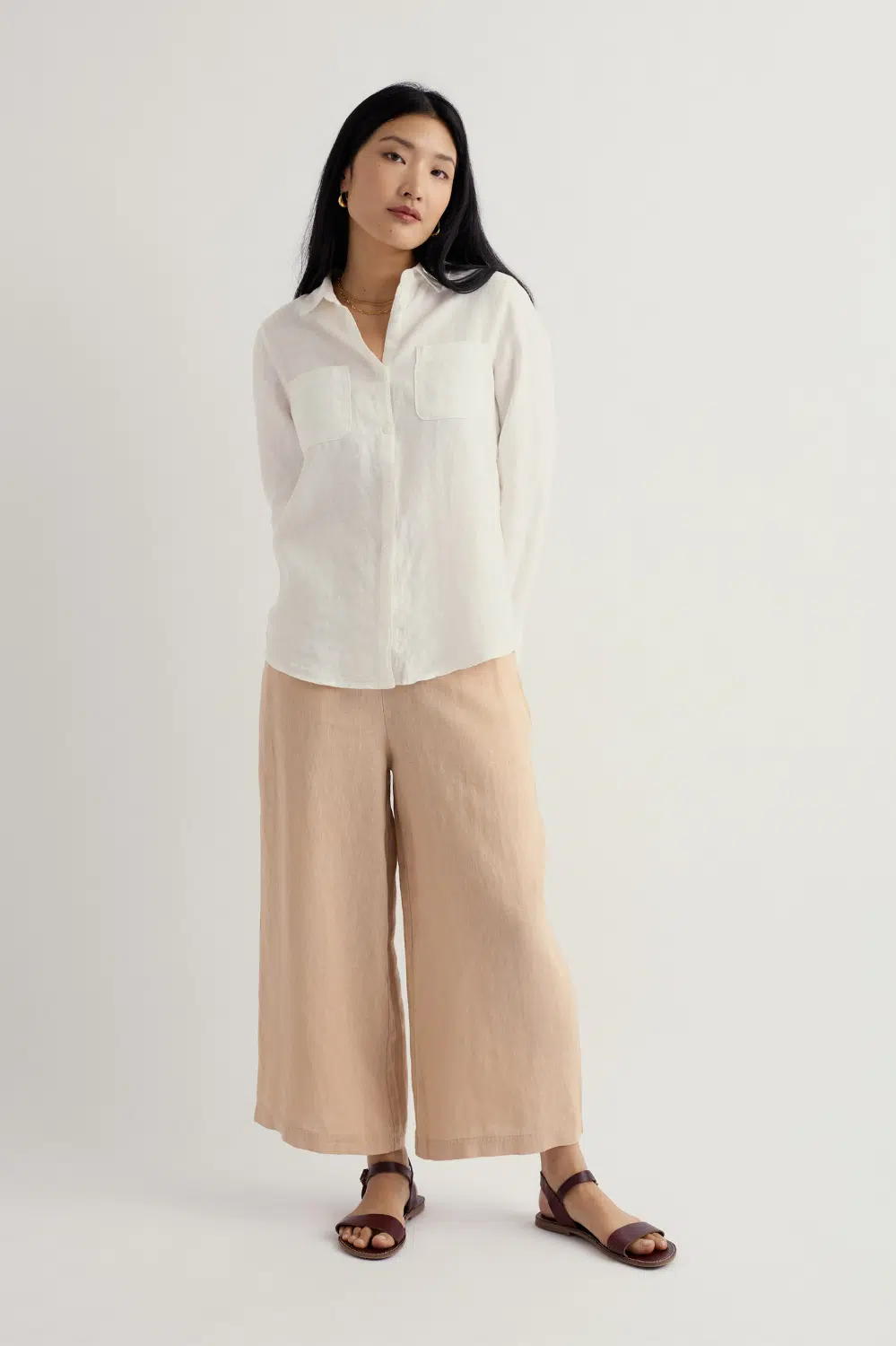 De Merrivale Culottes van Seasalt Cornwall zijn een echte zomerse essential. De combinatie van een luchtige linnen stof en een wijde cropped pijp zorgt voor een ontspannen, stijlvolle look die perfect werkt op warme dagen.