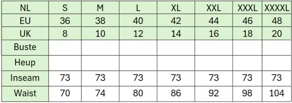 • Lengte: volledige lengte of 7/8 bij omslaan