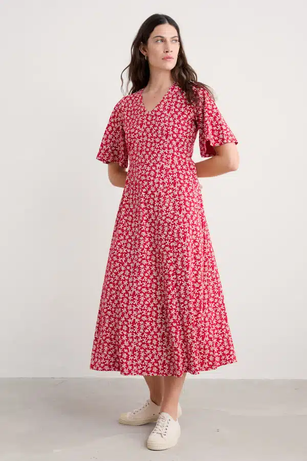 Seasalt Cornwall Nancy Dress Saltwater Ditsy Scarlet