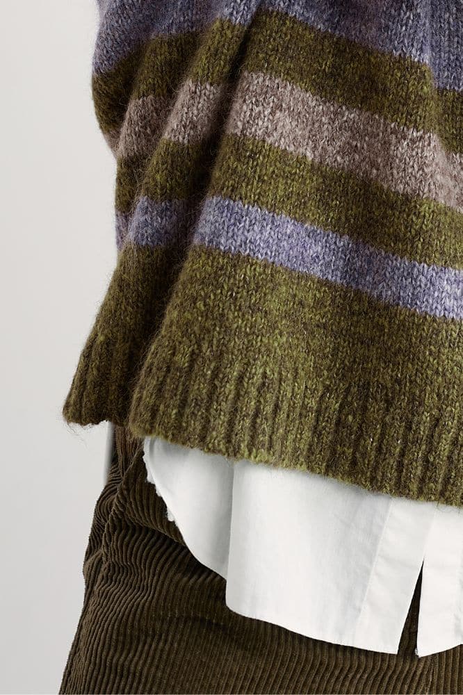 De zachte strepen in Carvannel Laurel Mix vormen een rustige, verfijnde kleurencombinatie die prachtig staat op denim, winterwit, bruin, navy of een rok in een warme tint. De crew neck en ribafwerking aan hals, mouwen en zoom maken de trui tijdloos en netjes afgewerkt. Het is een ideaal item voor het tussenseizoen én de koudere maanden: behaaglijk, maar nooit te warm binnen. Dit is zo’n trui die je overal mee naartoe neemt — naar je werk, een lunchafspraak of een frisse wandeling langs het water.