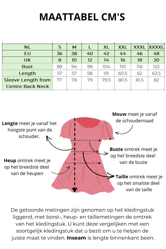 • Modelinformatie: Valt op maat, het is een ruimvallend model.