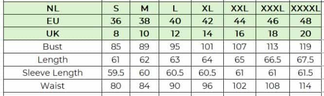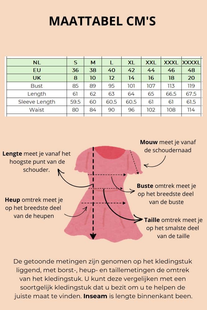 • Model draagt: maat 10, lengte ca. 1,75 m
