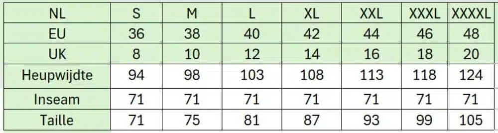 • Lengte: standaardlengte (afhankelijk van maat)