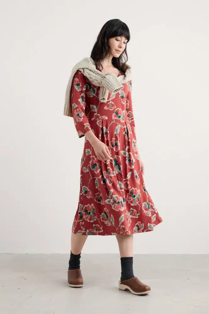 De jurk is gemaakt van biologisch katoen met een kleine toevoeging van elastaan, waardoor de stof zacht, ademend en licht elastisch is. Dit zorgt voor ultiem draagcomfort, ook bij langere dagen. De handgemaakte print in de kleur Artist Camelia Red Sail geeft de jurk een speelse, creatieve uitstraling die typisch is voor Seasalt Cornwall. Het kleurpalet is fris en vrouwelijk, en combineert prachtig met zowel neutrale accessoires als een kleurrijke shawl of vest.