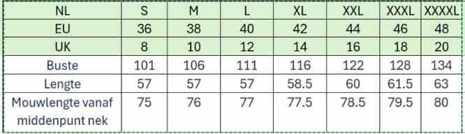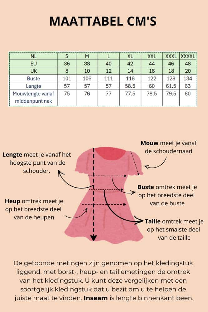 • Model draagt: maat 10, lengte ca. 1,75 m
