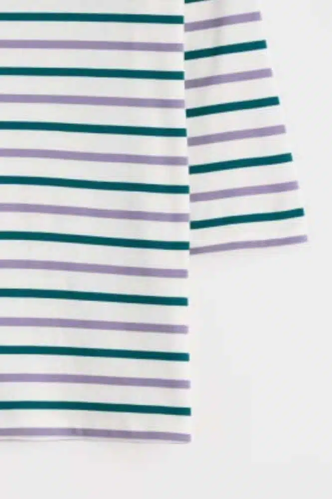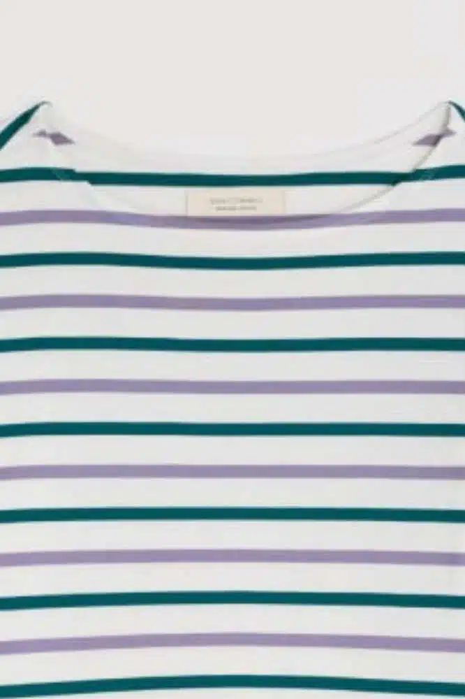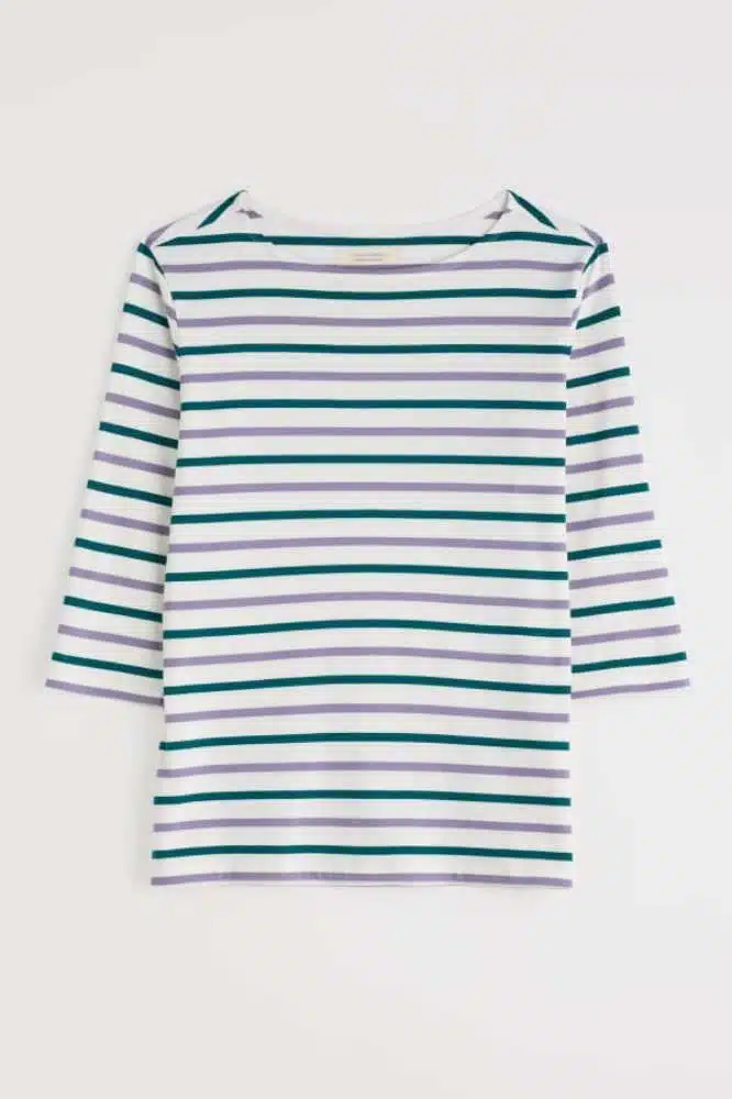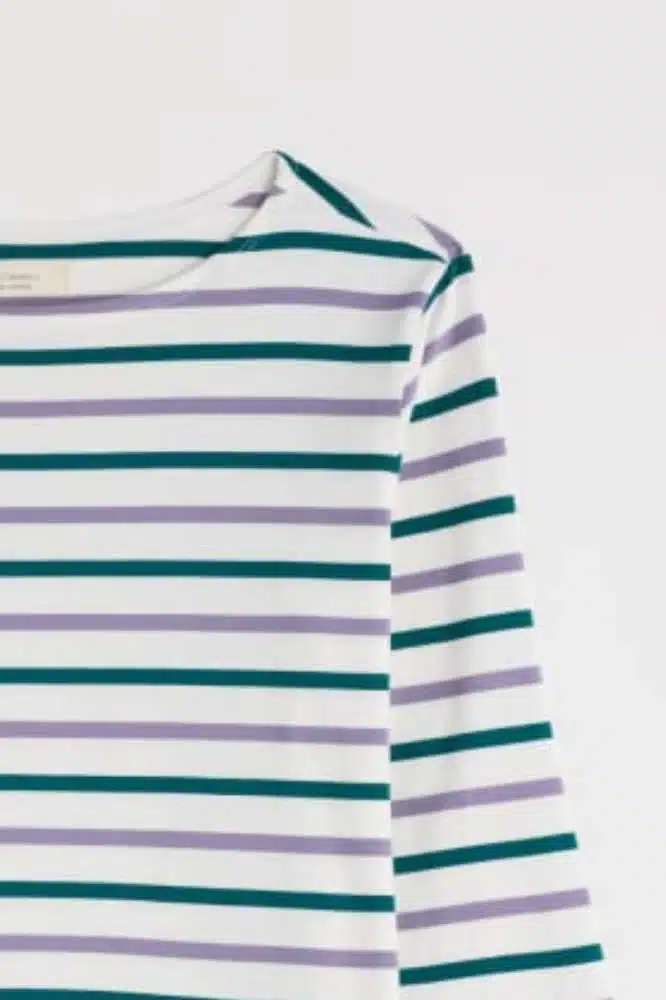 De Sailor Top Duet Breton Echium is een tijdloze klassieker die moeiteloos stijl en comfort combineert. Deze 3/4 mouwversie van de iconische Bretonse streep is gemaakt van 100% biologisch katoen, wat zorgt voor een heerlijk zachte en ademende stof. De elegante boot hals en relaxte pasvorm geven de top een moeiteloos chique uitstraling, terwijl de garen-geverfde strepen levendig blijven, zelfs na veelvuldig wassen.