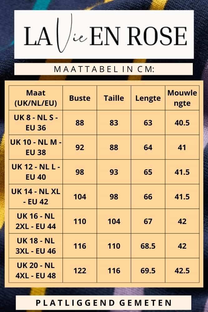 | UK 16 – NL 2XL – EU 44 | 110 | 104 | 67 | 42 |
