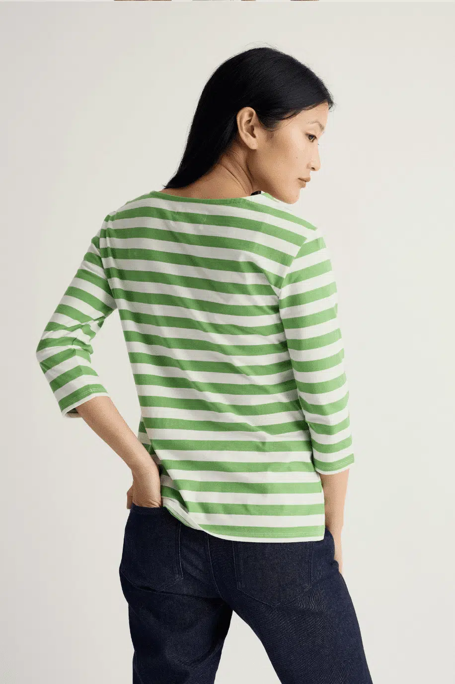 De ontspannen pasvorm en elegante boothals geven dit shirt een nonchalante uitstraling zonder slordig te worden. De strepen zijn yarn-dyed, wat zorgt voor heldere, diepe kleuren die mooi blijven, ook na veel wassen. Dit is zo’n top die je combineert met denim, een linnen broek of onder een vest — en altijd goed zit.