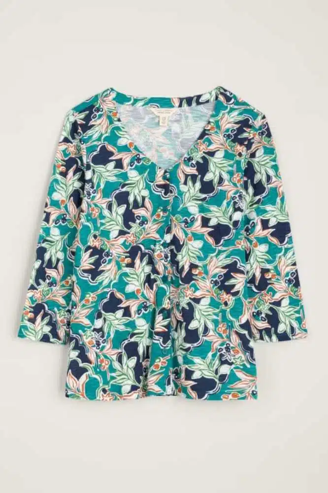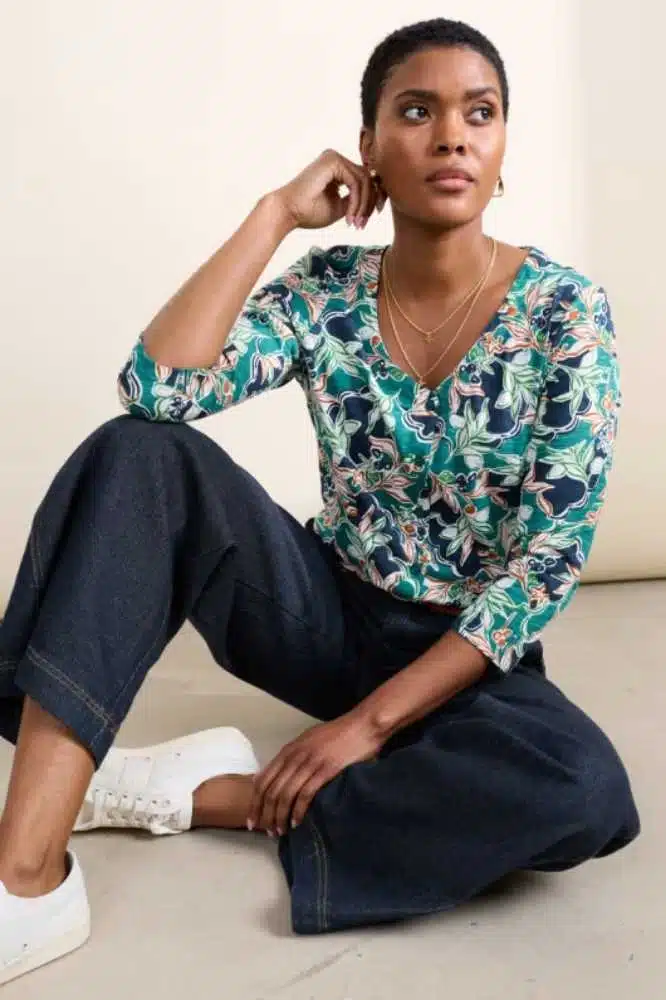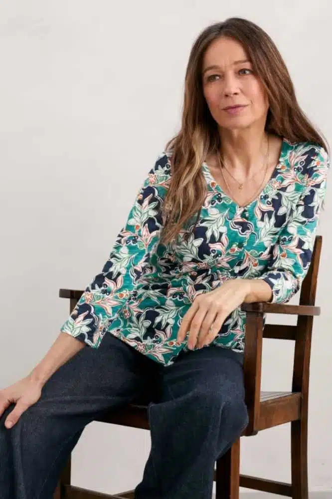 De Studio Glass Top Linear Citrus Rockpool van Seasalt Cornwall is vervaardigd van 100% biologisch katoen, waardoor het niet alleen luxueus aanvoelt maar ook bijdraagt aan duurzaamheid. Biologisch katoen minimaliseert de impact op het milieu door minder water en geen schadelijke chemicaliën te gebruiken tijdens de productie, terwijl het zorgt voor een comfortabele en ademende stof die vriendelijk is voor de huid.