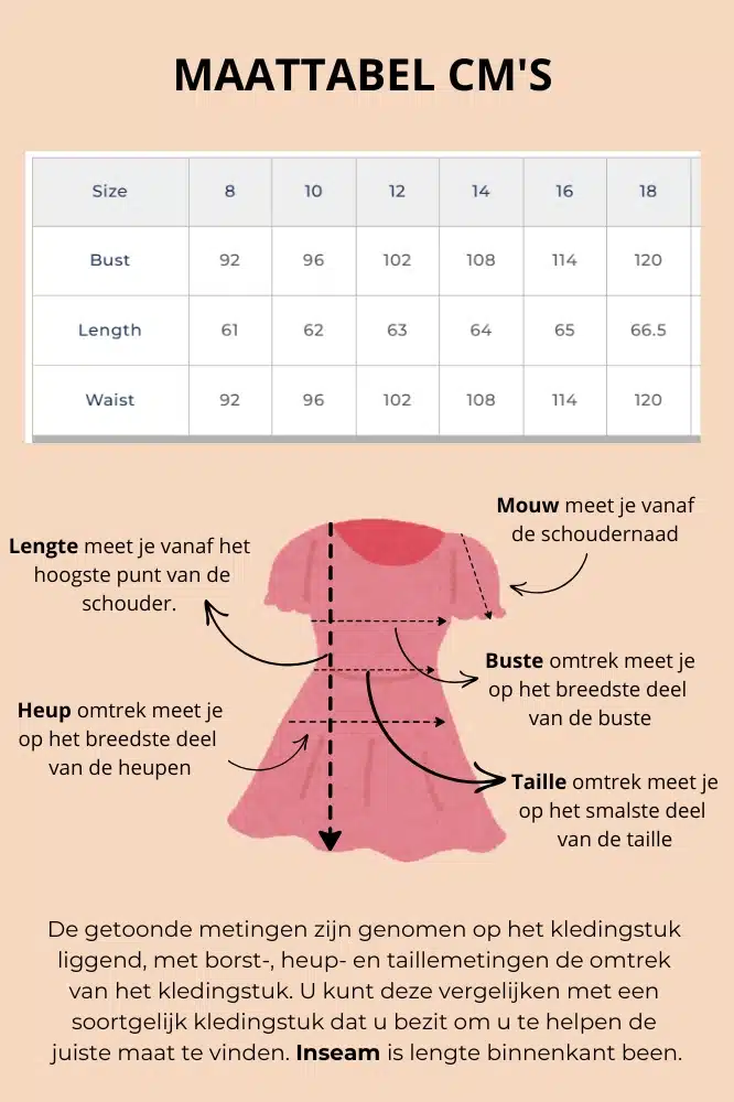 Modelmaat: Het model draagt maat 12 en is 172 cm lang