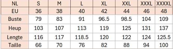 Was de jurk op een fijne was van 30°C, bij voorkeur binnenstebuiten. Strijk op lage temperatuur indien nodig. Vermijd de droger om de levensduur van de stof te behouden en de pasvorm optimaal te houden.