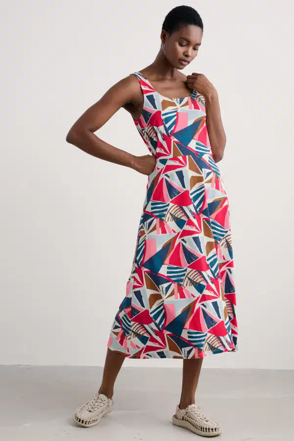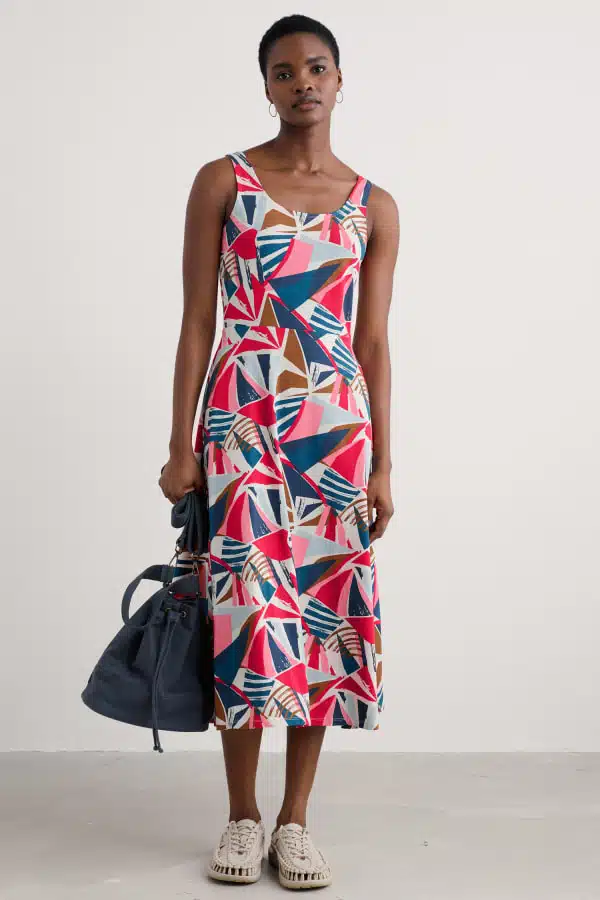 De Sun Gleam Dress Spinnaker Sails Chalk van Seasalt Cornwall is zo’n jurk waar je naar blijft grijpen zodra de zon zich laat zien. Gemaakt van een heerlijk zachte biologische katoenmix en ontworpen met een flatterende fit-and-flare pasvorm, voelt deze jurk net zo fijn als ze eruitziet. De luchtige jersey stof beweegt mee met elke stap en geeft je de vrijheid om je dag moeiteloos door te komen – of je nu slentert over een boulevard aan zee of een stadswandeling maakt met vrienden.