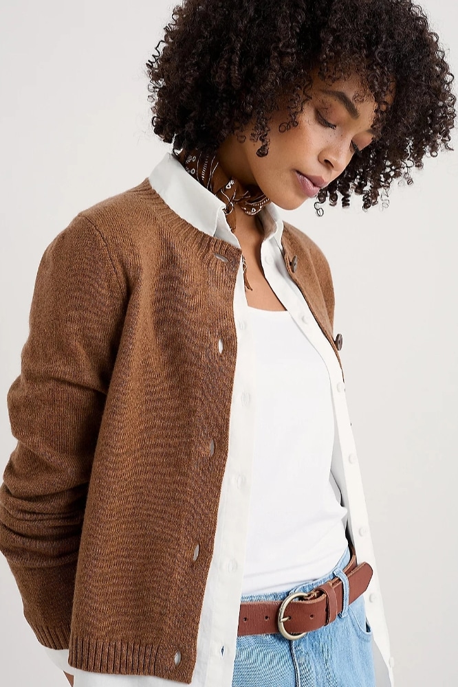 De Tern Tide Cardigan Toffee van Seasalt Cornwall is de perfecte laag voor koelere dagen en avonden. Dit tijdloze, veelzijdige vest heeft een semi-fitted pasvorm die elegant op de natuurlijke taille valt. Hierdoor combineert het prachtig met high-waisted broeken, rokken en fit-and-flare jurken. De klassieke ronde hals, ribgebreide manchetten en zoom zorgen voor een verfijnde uitstraling, terwijl de knopenrij aan de voorkant een tijdloze charme toevoegt.