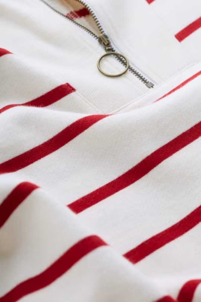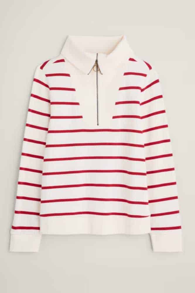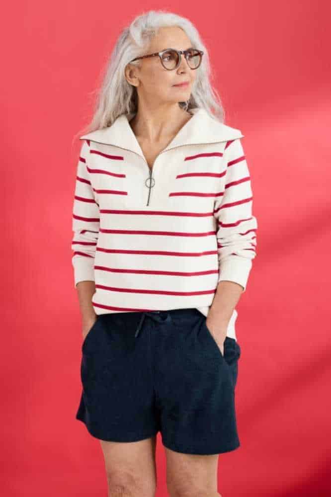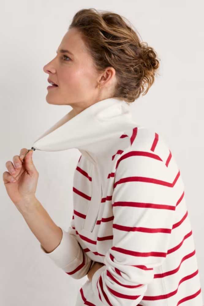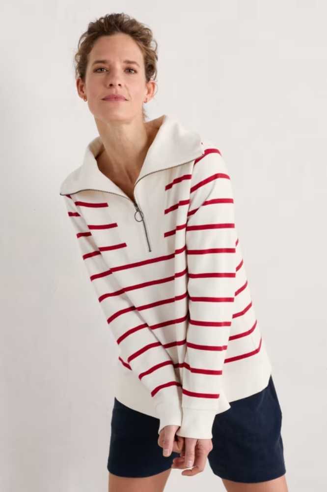 De Tideline Sweatshirt Amaranthe Chalk Rudder is een zacht sweatshirt met een opvallende, maritiem geïnspireerde kraag en een ritssluiting bij de hals. De geribde textuur van de kraag wordt herhaald in de zoom en diepe manchetten, die de mouwen een lichte blousonvorm geven. We houden van deze stijl over onze klassieke strepen en jeans, voor een outfit die ons door de seizoenen heen zal begeleiden.