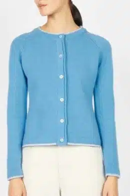 Deze cardigan is gemaakt van 100% biologisch katoen en draagt het GOTS-certificaat, wat betekent dat het katoen op een duurzame en ethische manier is geproduceerd. De 3/4-mouwen en de subtiele gerolde randafwerking langs de halslijn en manchetten geven de cardigan een verfijnde, vrouwelijke touch. De verborgen lusjes aan de binnenzijde zorgen ervoor dat je de cardigan gemakkelijk kunt aantrekken zonder de vorm te verstoren.