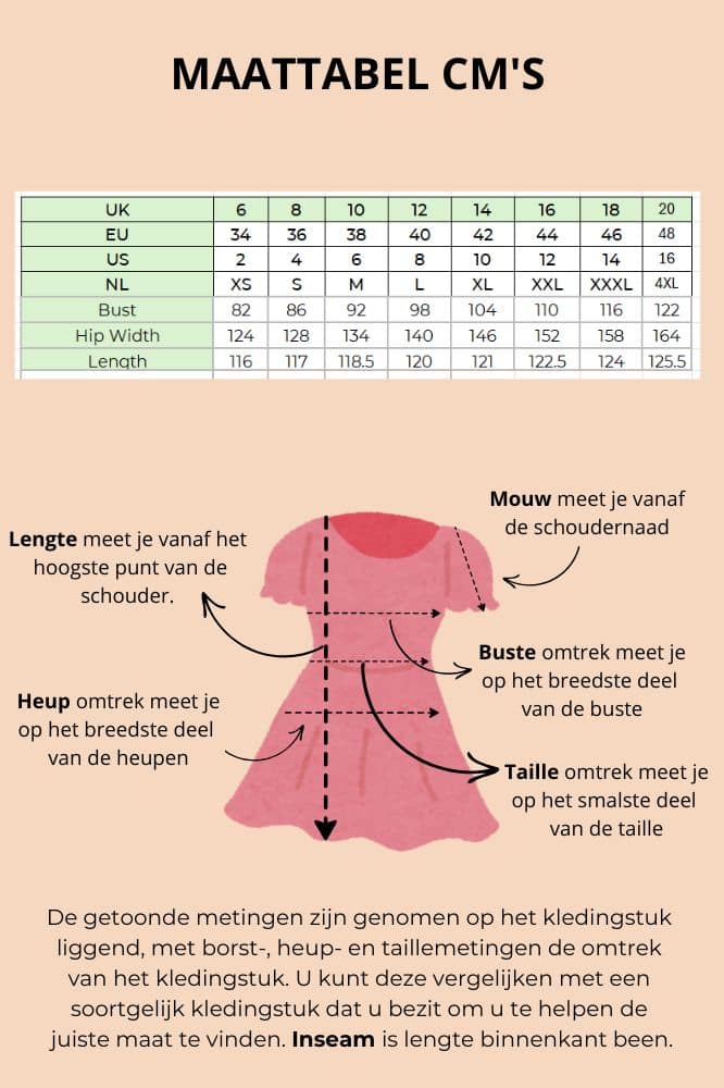 • Model draagt: maat 10, lengte ca. 1,75 m
