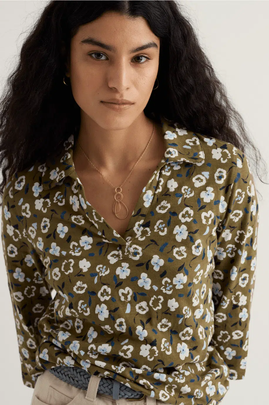 De Wavecrest Jersey Shirt (GOTS) Arty Pansy Seagrass van Seasalt Cornwall is zo’n top die je zonder nadenken aantrekt. Gemaakt van zachte biologische katoen en ontworpen met een ontspannen pasvorm die comfortabel draagt zonder vorm te verliezen. Een ideale basis met nét wat meer detail.