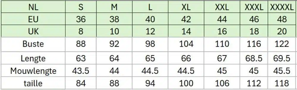 • Model draagt: maat 10, lengte ca. 1,75 m