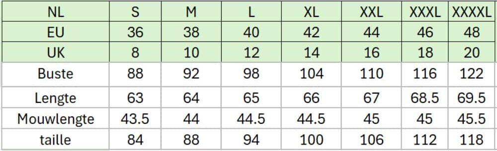 • Model draagt: maat 10, lengte ca. 1,75 m