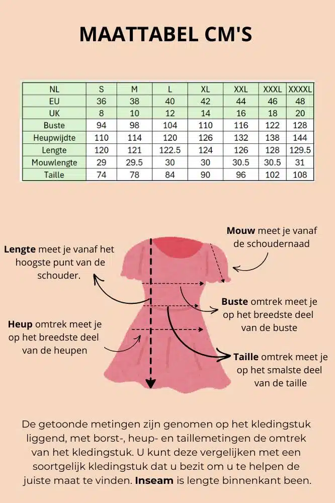 De lengte valt ongeveer op de knie, waardoor de jurk veelzijdig is en geschikt voor zowel werk, vrije tijd als een etentje. Combineer hem met een vest en enkellaarsjes in de herfst, of met sandalen en een lichte shawl in de zomer. De eenvoud van het ontwerp zorgt ervoor dat de jurk zich moeiteloos aanpast aan verschillende gelegenheden en seizoenen.