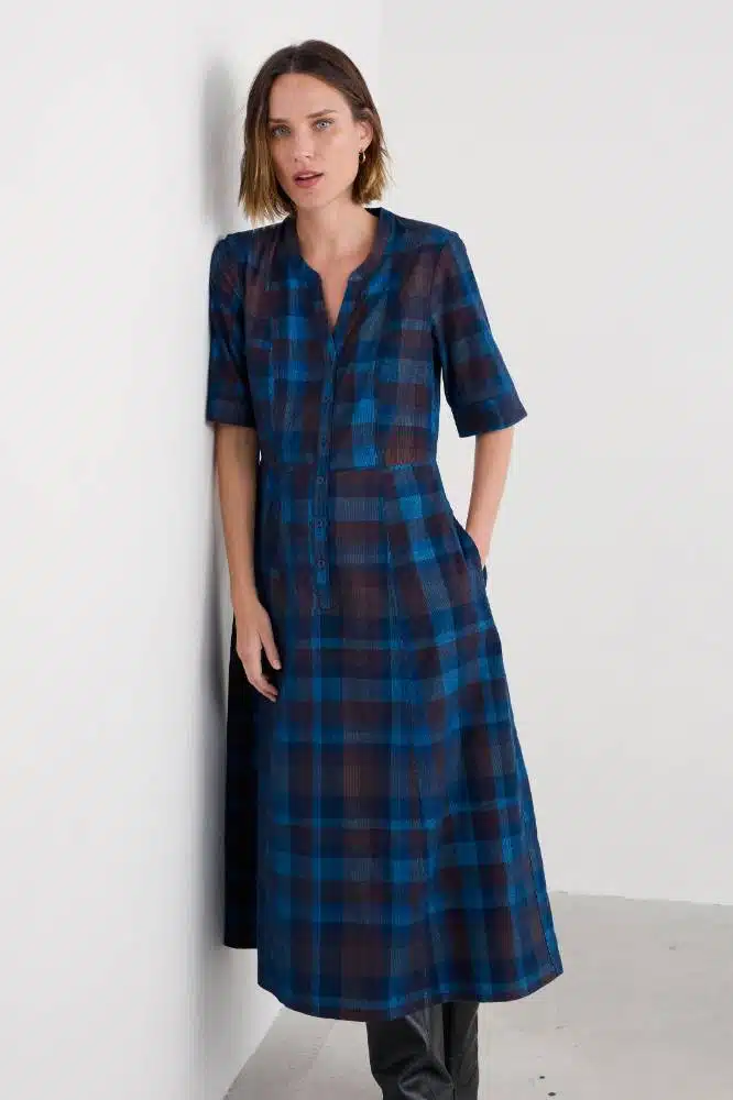 De Wightwick Dress Honesty Sea Cave van Seasalt Cornwall is een tijdloze jurk die je eindeloos kunt combineren. Deze klassieke stijl heeft een subtiel getailleerde vorm die je figuur mooi volgt, zonder strak te zitten. Het opstaande kraagje en de splitvormige halslijn geven de jurk een elegante uitstraling, terwijl de knoopsluiting en praktische steekzakken zorgen voor draagcomfort in het dagelijks leven. De diepe kleur Sea Cave is geïnspireerd op de kust en geeft de jurk een rijke, natuurlijke uitstraling die gemakkelijk combineert met zowel casual als meer geklede outfits.