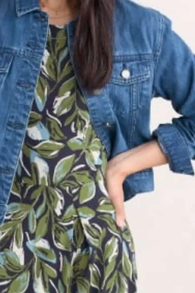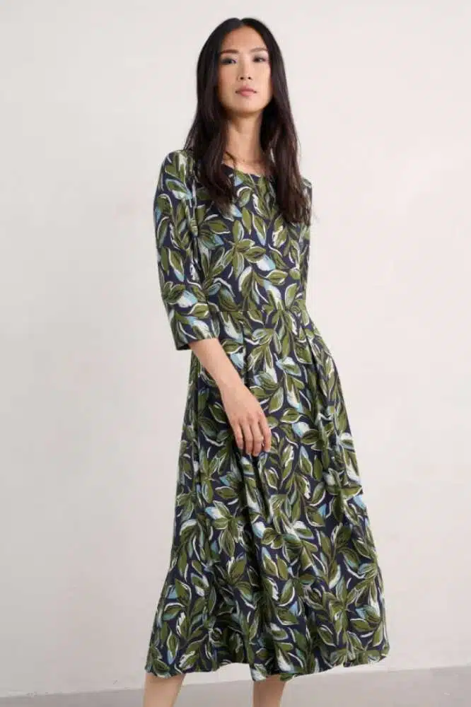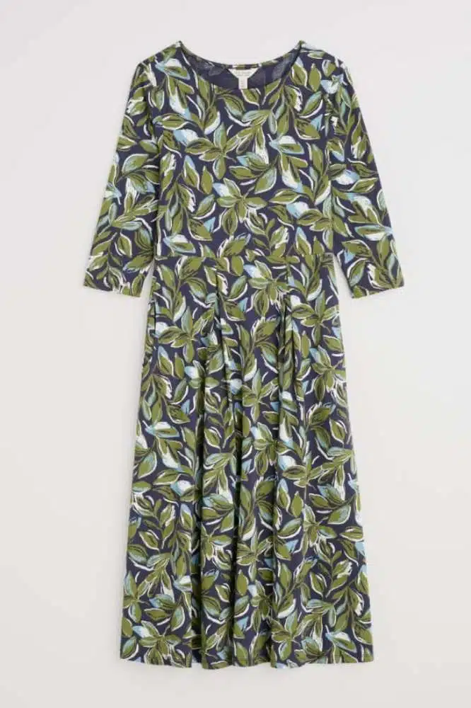 Seasalt Cornwall Wild Bouquet Dress Tonal Leaves Maritime