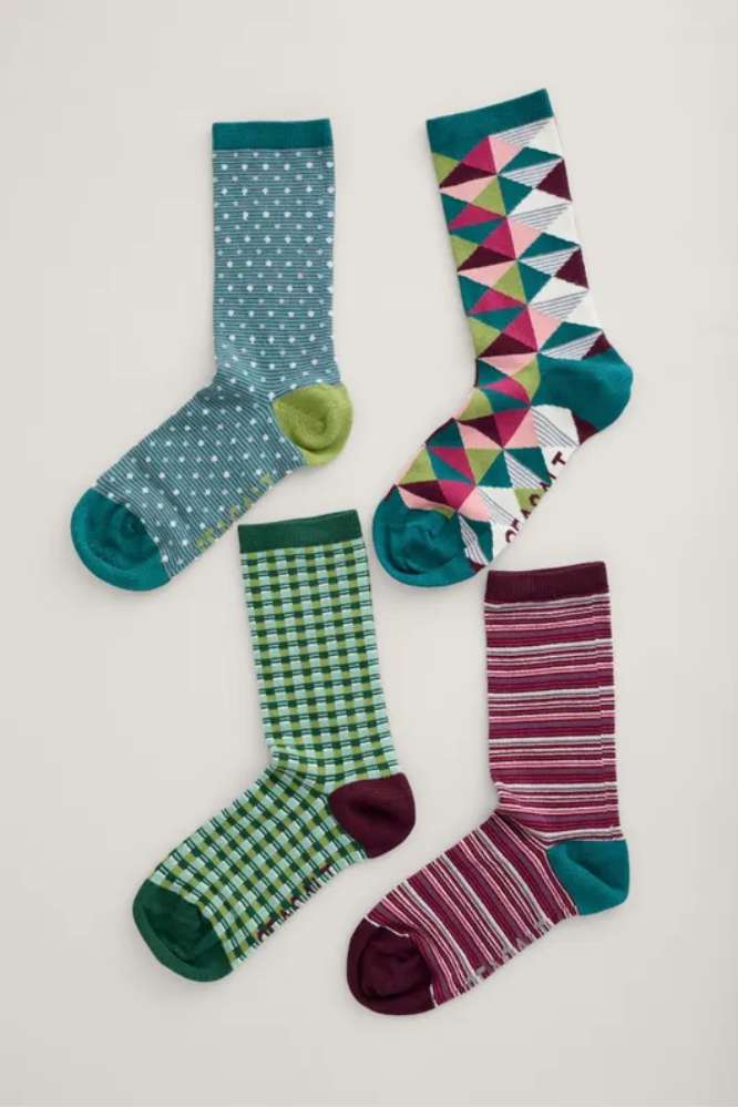 Seasalt Cornwall Women’s Sparkly Sailor Socks Box of 4 Carn Silver Mix