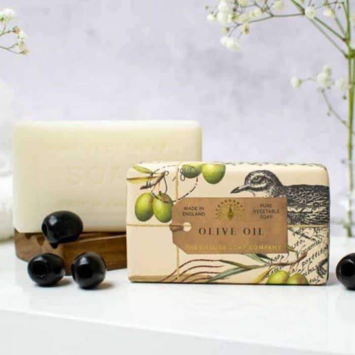 Een Olijfolie zeepstaaf, uit de Anniversary Collection. Deze hydraterende sheaboterzeep heeft een rijke geur van musk en olijf, geïnspireerd op de olijfgaarden van de Adriatische kust. Ondertonen van vijgen en blonde houtsoorten creëren deze frisse en organische geur. Verpakt in prachtig geïllustreerde, volledig recyclebare verpakking.